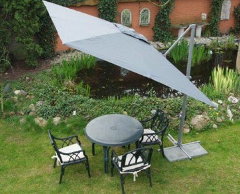 Parasols zijn mogelijk met ronde of vierkante doeken. Met een paal in het midden, vrij hangend of met geïntegreerde verlichting. Volop keuze dus! Informeer vrijblijvend naar onze mogelijkheden.