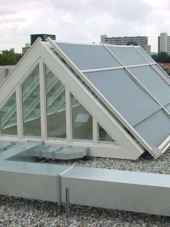 De ideale oplossing bij elk weertype. Het gebogen Topspin systeem biedt uitkomst op elke werkplek. Het systeem weert overvloedig zonlicht en brengt verkoeling, zelfs tijdens de heetste dagen van het jaar. Door het Topspin systeem aan de buitenzijde te monteren, wordt de warmte-invloed van buitenaf tot een minimum beperkt, zonder dat dit ten koste gaat van de lichtopbrengst in de onderliggende ruimten.