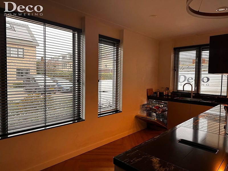 Geef uw huis de gewenste sfeer en uitstraling door onze houten jaloezieën. Door de lamellen zachtjes te kantelen kunt u op een eenvoudige manier zelf de lichtinval en privacy regelen. Ideaal als u langs een drukke straat woont waar veel mensen langslopen. De jaloezieën worden speciaal voor u op maat gemaakt, waardoor u een unieke sfeer kunt creëren in huis. De breedte van de lamellen kunt u zelf bepalen, waardoor u voor een rustige of stoere look kunt gaan.