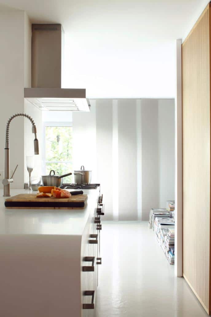 Paneelgordijnen zijn meer dan alleen raamdecoratie. Het is de perfecte manier om het zonlicht te weren bij schuifpuien, grote ramen of openslaande deuren. Een paneelgordijn is ook geschikt als scheidingswand, bijvoorbeeld in een kantoorruimte of open keuken om op een speelse en creatieve manier één ruimte op te delen in twee. Naast het opsplitsen van een ruimte of het decoreren van het raam functioneert een paneelgordijn ook heel goed als kastdeur.
