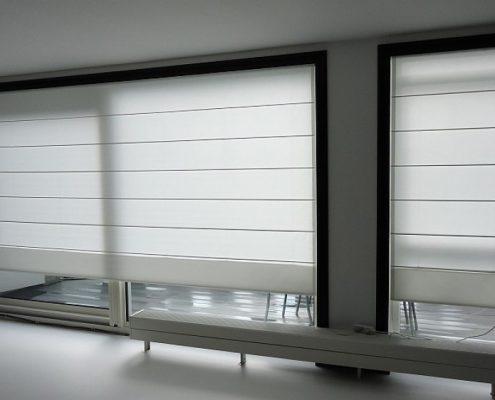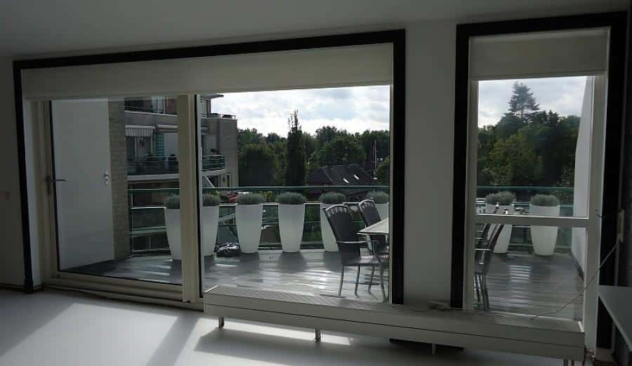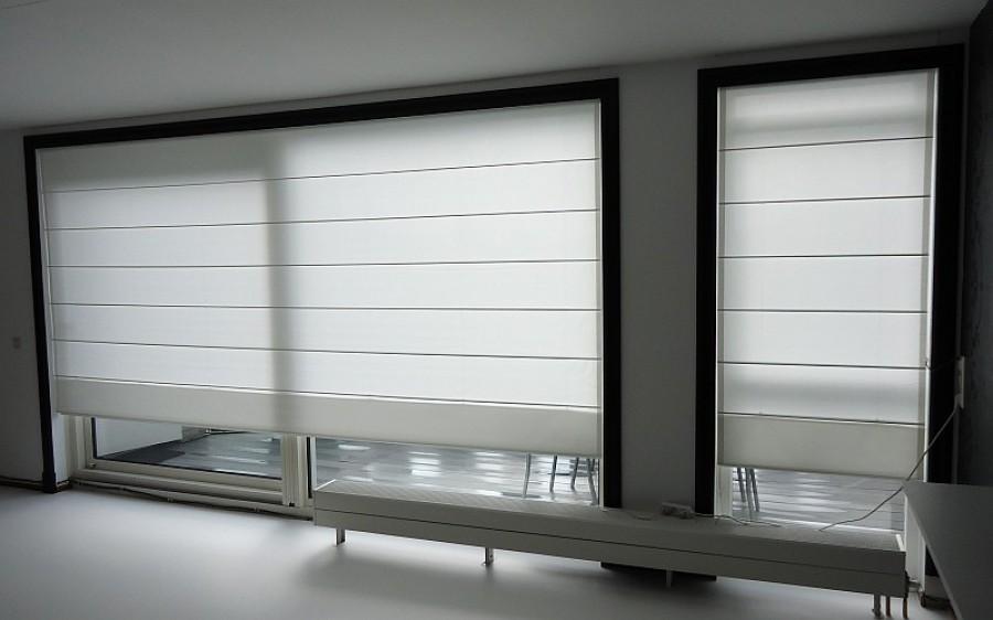 Elektrische vouwgordijnen gemonteerd in Oss. Bedienbaar door middel van een Somfy afstandbediening. Tot 10 meter uit 1 stuk mogelijk.