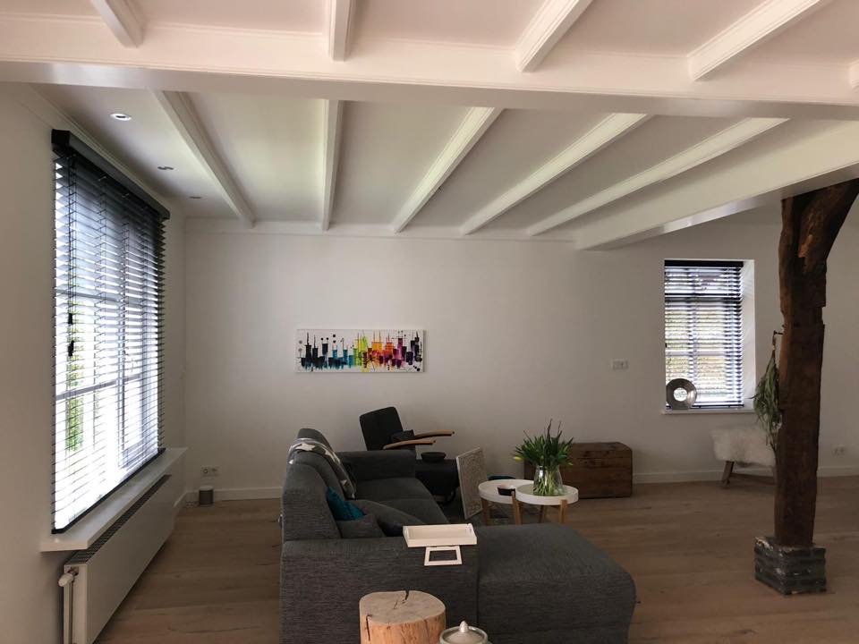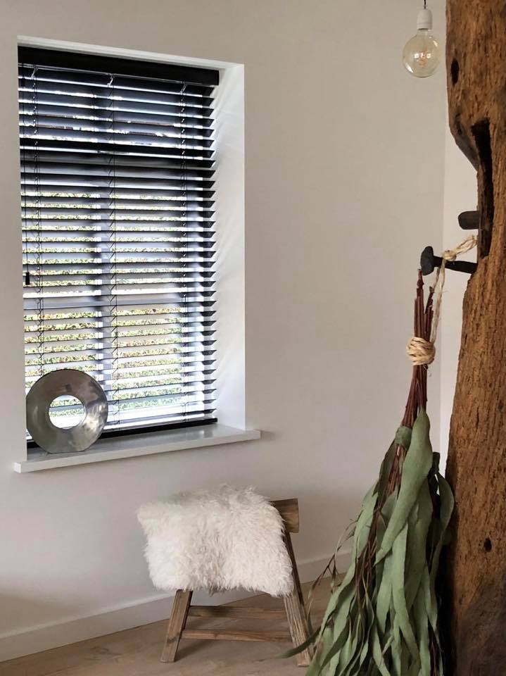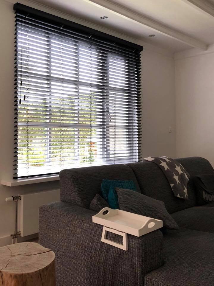 In Berghem hebben wij deze prachtige 50 mm houten jaloezieën mogen monteren en wat een verschil maakt dat! De ruimte was al mooi, maar deze donkere houten jaloezieën maken de woonkamer gewoon helemaal af.