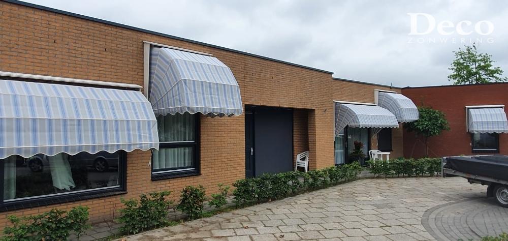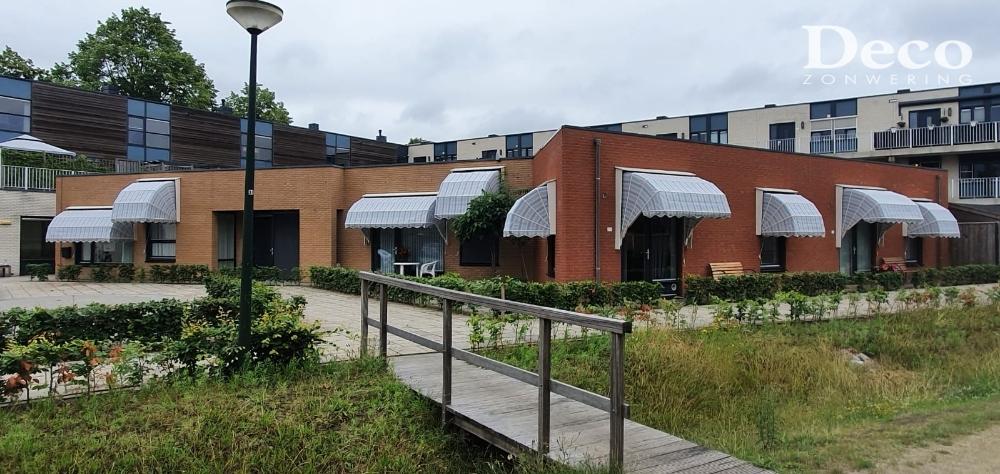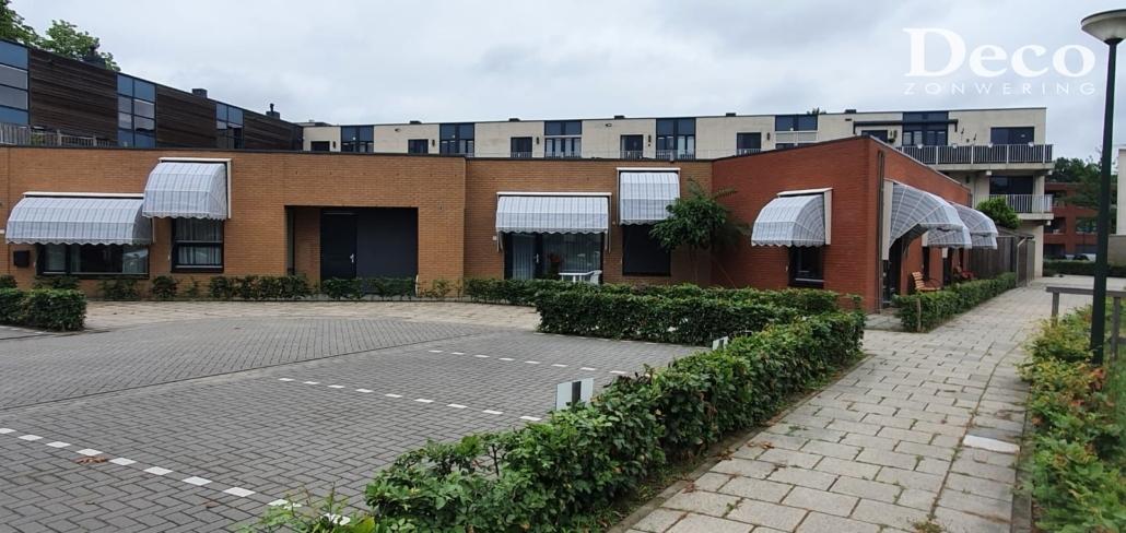 Onlangs hebben wij in Schijndel deze zorgwoning mogen voorzien van moderne op maat gemaakte markiezen. En het resultaat mag er wezen! Het aanzicht oogt direct een stuk gezelliger. En niet onbelangrijk: de woningen blijven koel in de zomerperiode.