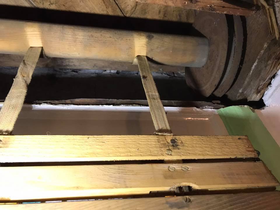 De reparatie begon met het verwijderen van de koof aan de binnenkant en daaropvolgend het schoonmaken van de kasten. Hierna konden we beginnen aan de houten lamellen, die na alle jaren nog steeds in uitzonderlijk goede staat waren. Zo ook de houten rollen en oude ophangbanden. We hebben daar alleen een nieuw optrekband, speciale bandopwinders en een goede dosis vakmanschap aan toegevoegd. Oude tijden herleven weer in deze prachtwoning in Oss, wij hebben deze klus met veel plezier uitgevoerd.