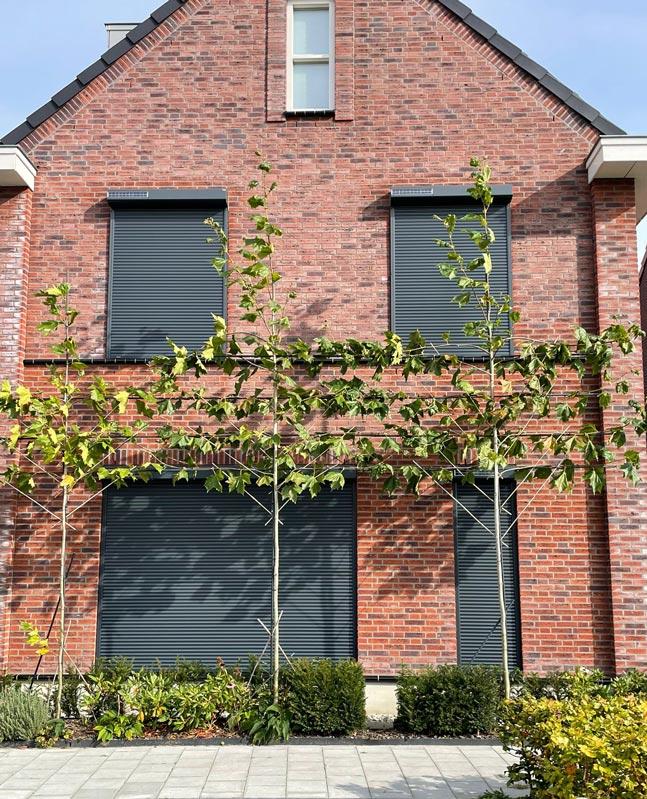 We horen nog wel eens dat men denkt dat rolluiken afbreuk doen aan de uitstraling van een huis. Een misconceptie want rolluiken zijn door de jaren heen flink veranderd en bieden een scala een esthetische mogelijkheden waarmee u ze helemaal naar uw smaak kunt maken. Denk hierbij bijvoorbeeld aan de kleur van de rolluiken. Bij deze woning is gekozen voor solar rolluiken in de RAL kleur 7016. Zo sluiten ze mooi aan op de antraciet tegeldetails die zijn verwerkt in de gevel van de woning.