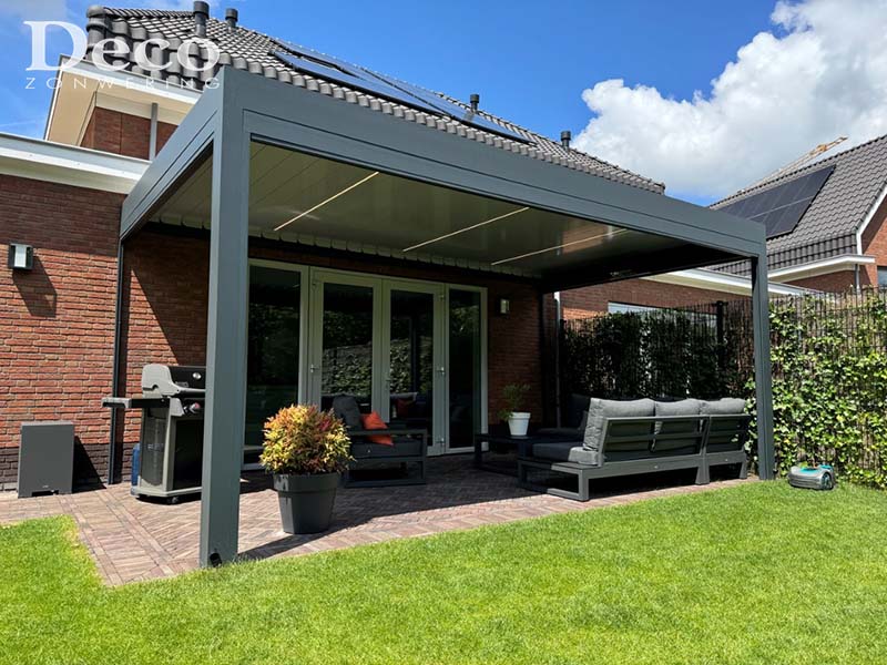 Terrasoverkapping met draaibare lamellen