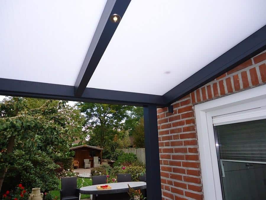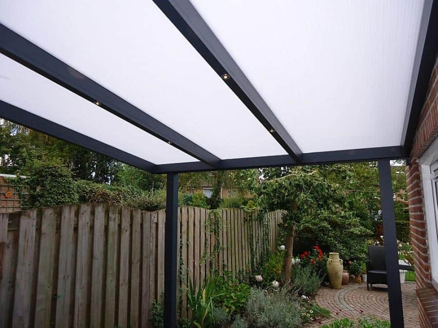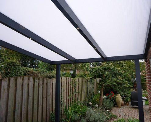 Kleur aluminium: Ral 7016 antraciet structuurlak, kleur Polycarbonaatplaten: opaal