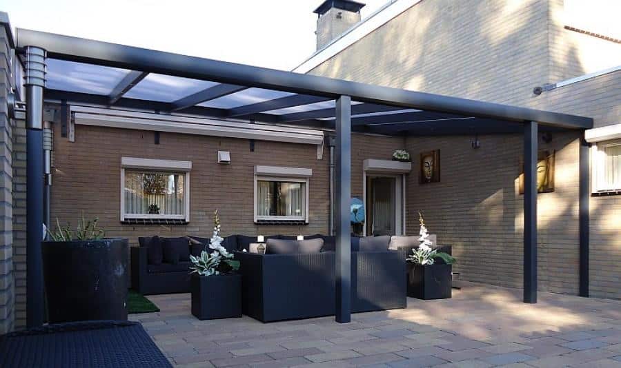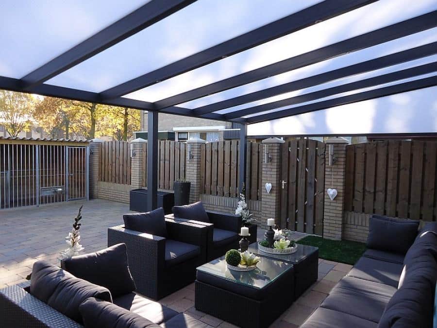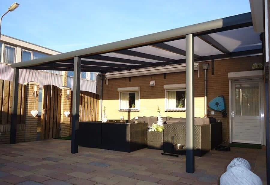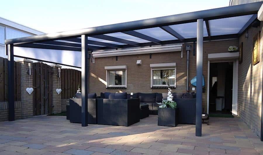Kleur aluminium: Ral 7016 antraciet structuurlak, kleur Polycarbonaatplaten: opaal