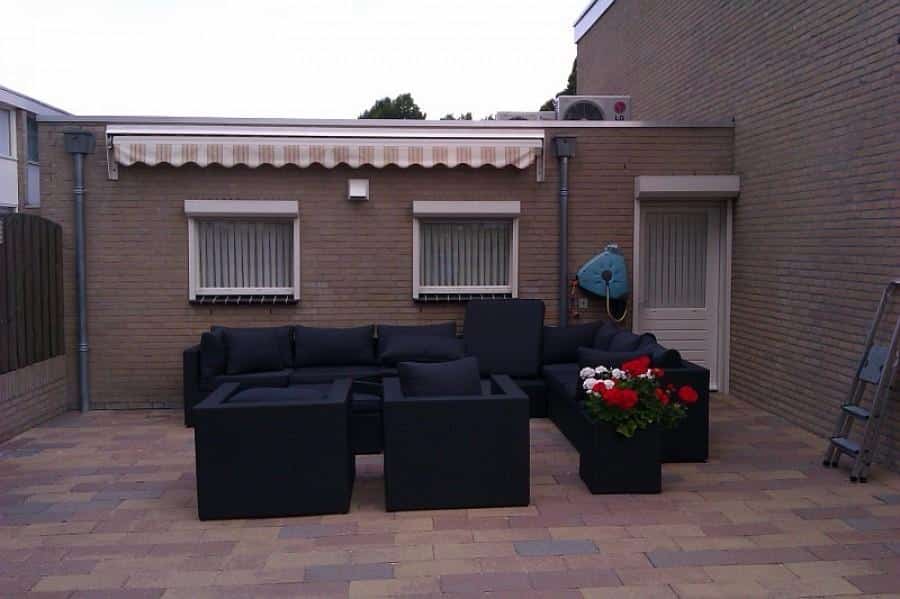 Terrasoverkapping met zijwandafdichting geleverd in Oss. Volledige waterdichte veranda met geïntegreerde waterafvoer, ledverlichting en een zijwandafdichting / spie.