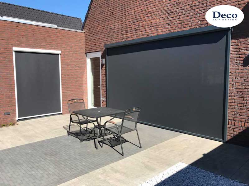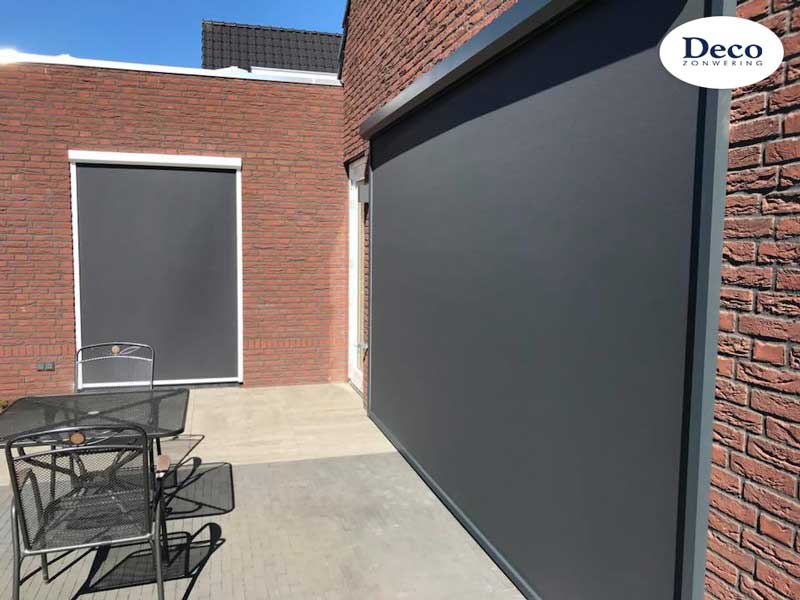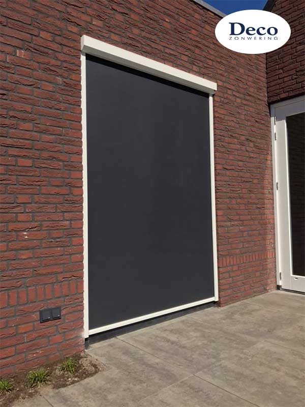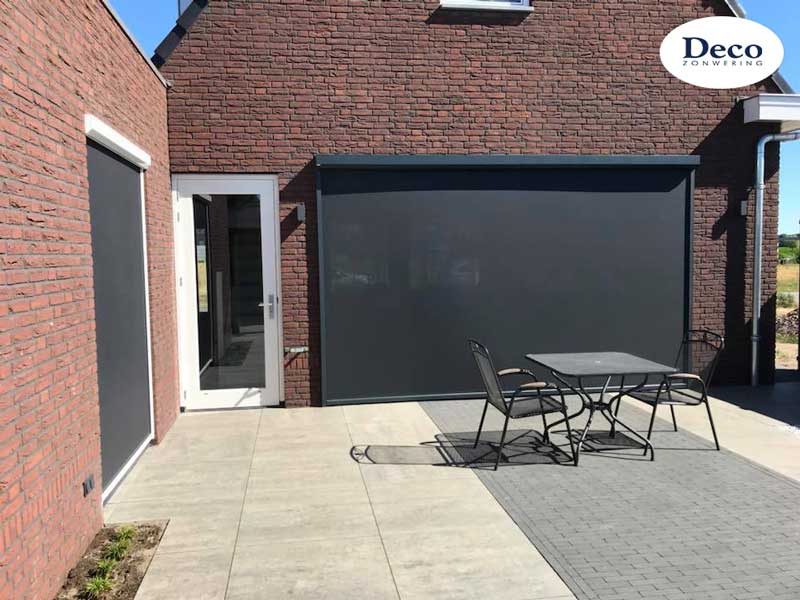 Beneden bij de woonkamer en keuken installeerden we dezelfde windvaste Deco Zip Screens, maar dan met een speciaal zonwerend doek. Zo kunnen de trotse bewoners nog goed naar buiten kijken, terwijl er veel minder warmte binnenkomt.