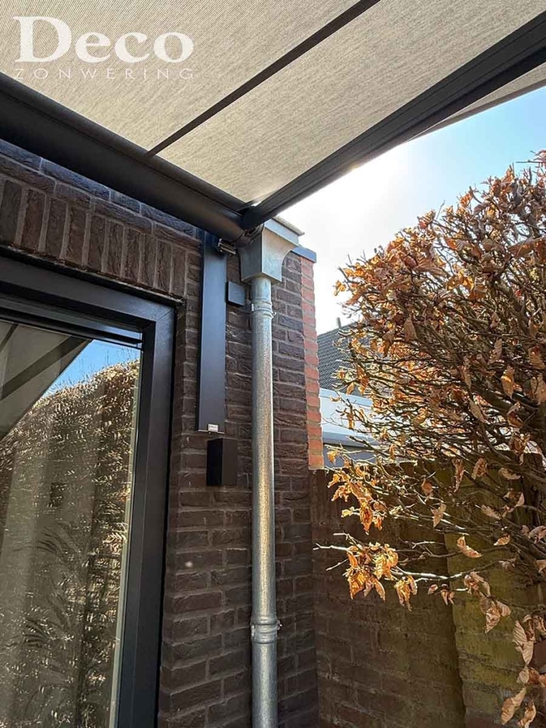 Voor deze woning in Heesch hebben we gekozen voor verlengde muurstrips. Daarmee zorgen we voor een solide verankering van het zonnescherm, die de krachten optimaal opvangt. Zo voorkomen we schade aan de muur of het metselwerk en creëren we een veilige, duurzame oplossing die jarenlang meegaat. Onze monteurs zijn dagelijks bezig met uiteenlopende montagesituaties en weten precies waar ze op moeten letten. Alles wordt tot in de puntjes voorbereid. Bekabeling wordt netjes weggewerkt, de afstellingen worden zorgvuldig gedaan, en pas als alles klopt, wordt het systeem opgeleverd. Het verschil zit in de details, en die maken uiteindelijk het verschil tussen een scherm dat simpelweg hangt, en een totaaloplossing die jarenlang zorgeloos comfort biedt.