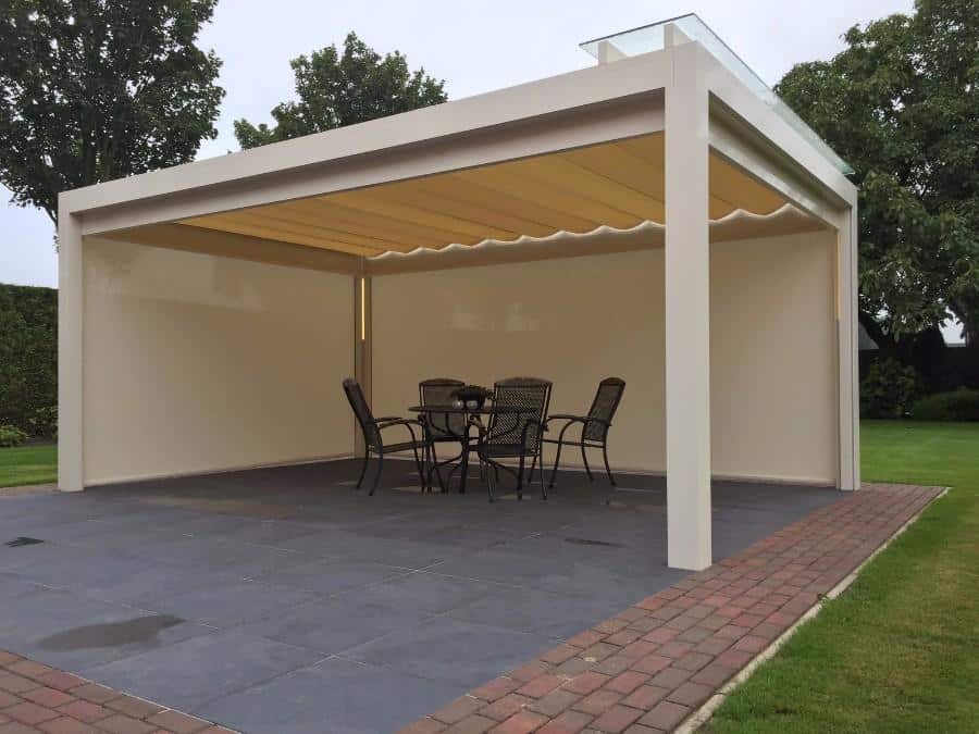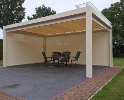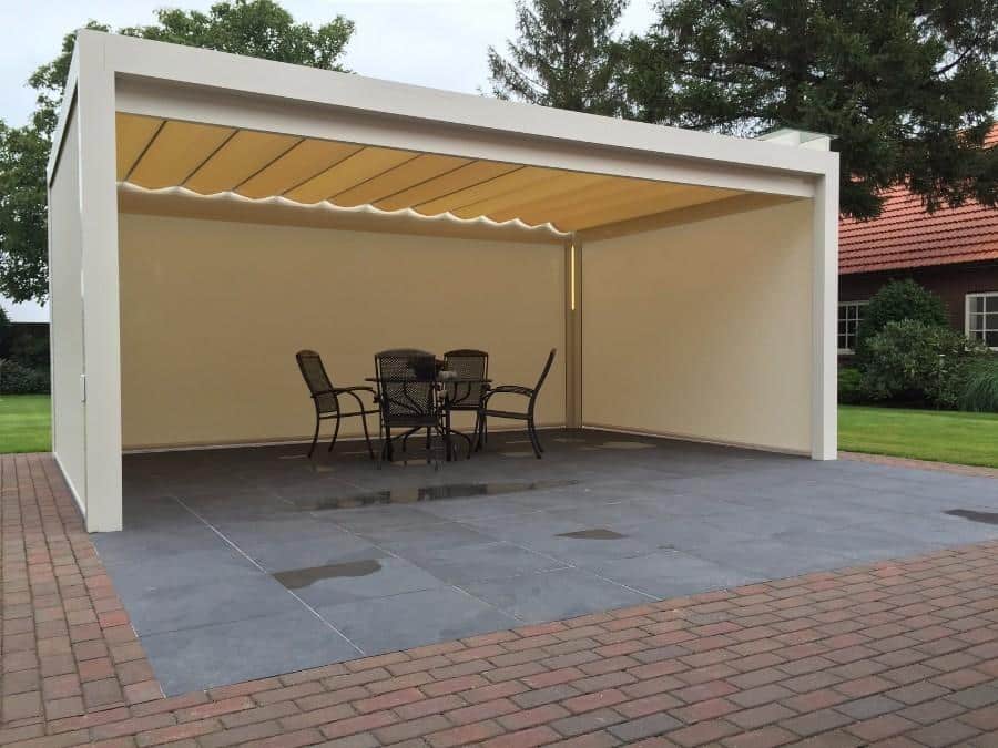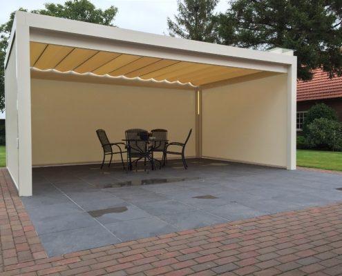 Het vouwzonweringssysteem MELANO TP7000 met zijn kubische vorm en de vloeiende overgangen overtuigt niet alleen functioneel, maar ook optisch, zowel in open als gesloten toestand. Een groot aantal opties zoals screens, volglazen schuifwanden of dimbare LED verlichting, alsmede ontelbare mogelijkheden van doek- en kleurencombinaties maken van de MELANO vouwzonwering een individueel ontspanningseiland met een uniek karakter.