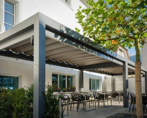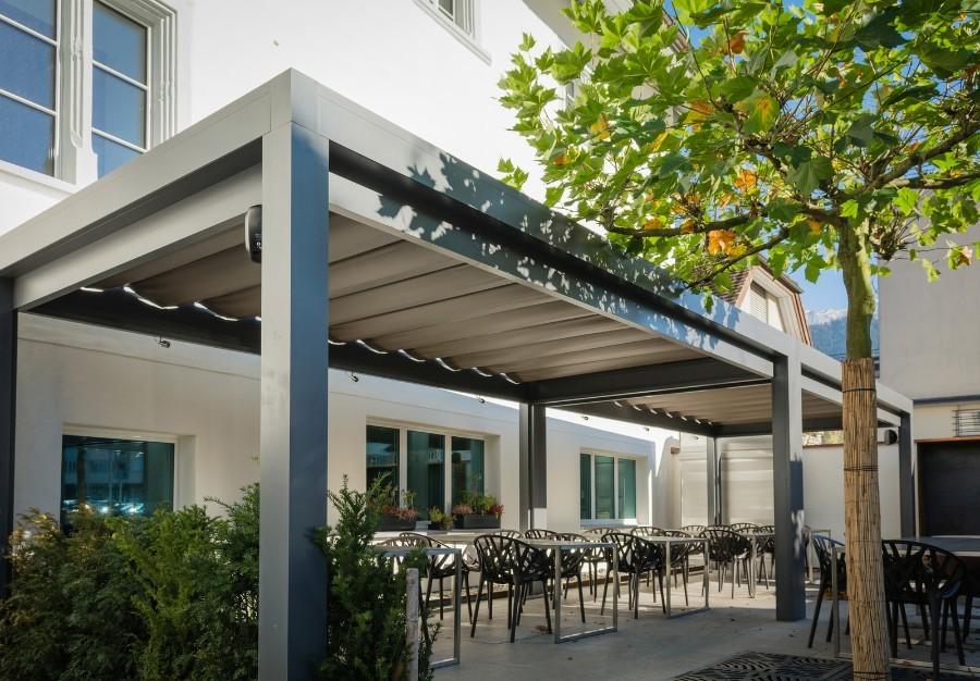 Als veelzijdige zon- en weerbeschermingsoplossing zorgt het MELANO-systeem voor een significante verlenging van het terras seizoen. Of het nu gaat om een terras, een tuinrestaurant of een strandpaviljoen – de gewenste schaduwzones kunnen met een druk op de knop gemakkelijk en individueel worden ingesteld. Zo worden ongebruikte ruimtes in zeer korte tij d omgezet in winstgevende horecaoppervlakken.