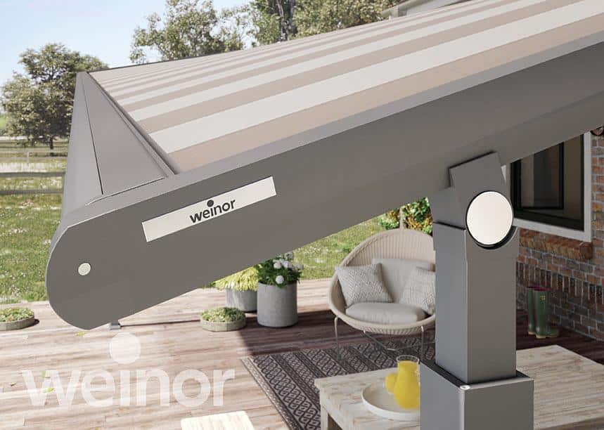 Om de stijl van de terrasoverkapping te matchen met uw woning en/of persoonlijke smaak, biedt Weinor u de keuze uit meer dan 140 design zonweringsdoeken van de hoogste kwaliteit. Om niet alleen het doek in stijl te krijgen, is het ook mogelijk om de staanders, geleiders en cassette in één van de vijftig beschikbare kleuren te leveren. Zo past alles perfect bij elkaar.
