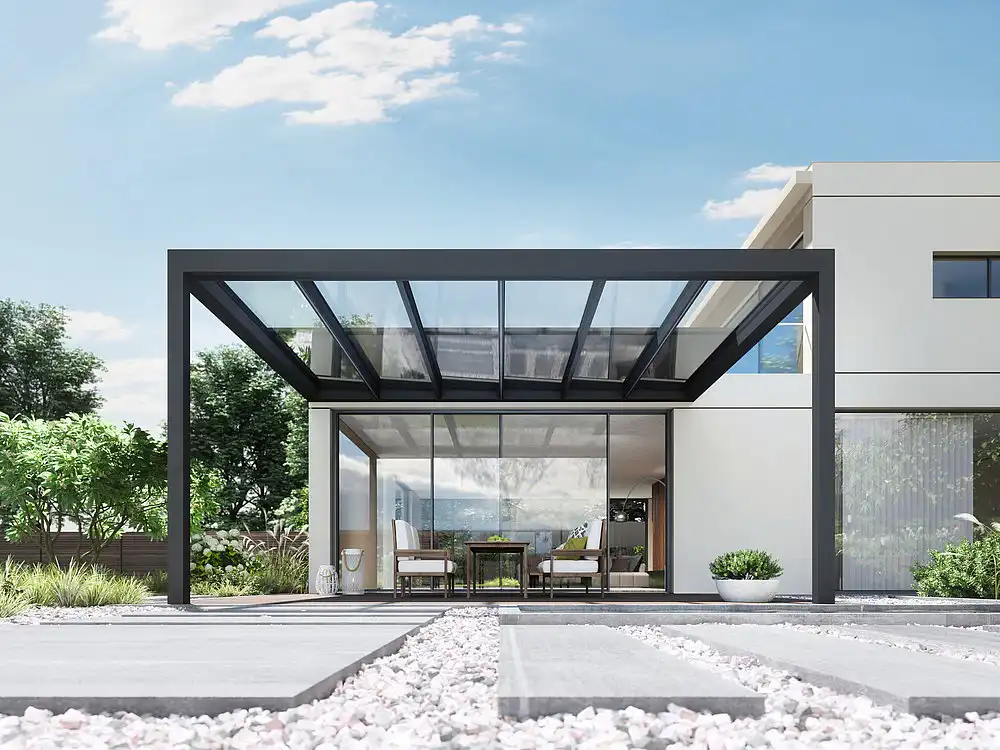 Bij Deco Zonwering hebben we een breed scala aan terrasoverkappingen. Één van de mogelijkheden is de prachtige kubistische terrasoverkapping van Stobag. De Vetro Fino, oogstrelend mooi in design met een glazen daksysteem.