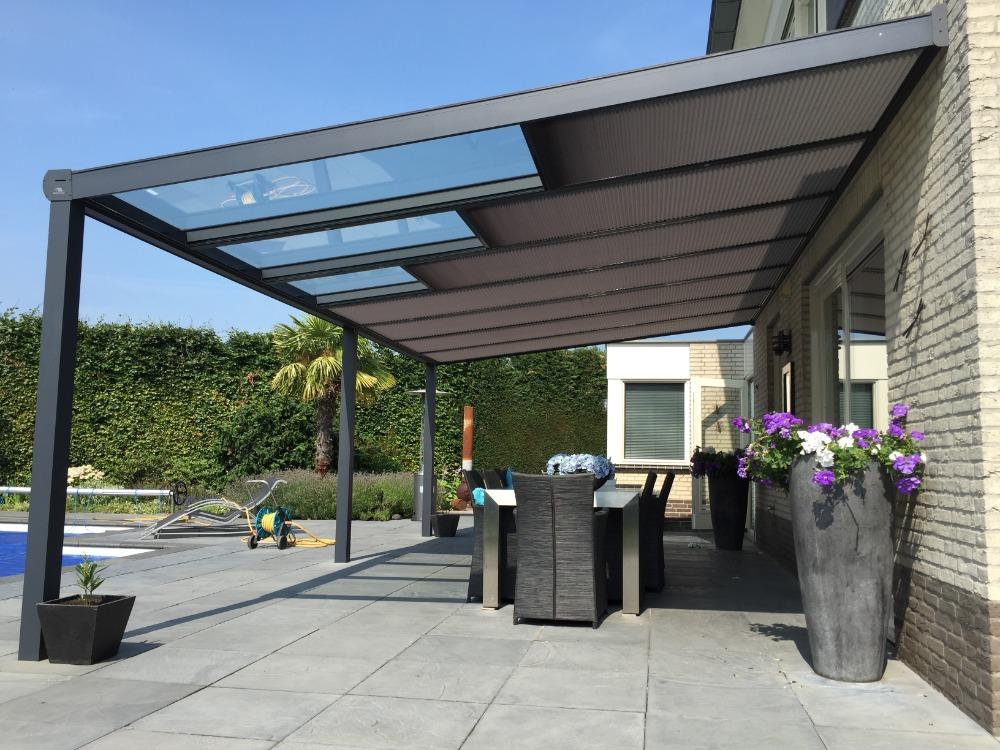 - Met bovenstaande optie wordt de zon niet alleen van het dak van de veranda gehouden, maar ook van uw raam.